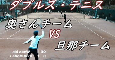 ダブルステニス!【奥さんチームVS旦那チーム!?】中々上達しないテニスです。4ゲーム消化で2-2の場合は5ポイント先取タイブレーク!?4試合目ともな…