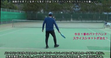 【テニスのコツ骨】ゆるテニス№1159(テーマはレッスン後のストロークで成果の確認:マンツーマンレッスンでシングルバックハンドスライスを伝授した後でストロー…