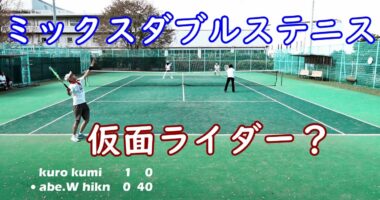 ミックスダブルステニス!【仮面ライダー現る!?の巻き!】中々上達しないテニスです。この日、男子三人、女子三人でしたので、ミックスダブルス大会?をしま…
