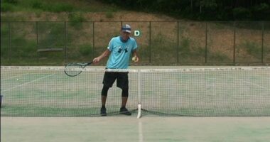 【テニスのコツ骨】ゆるテニス№1066(テーマは1人で出来る安定するフォアーハンドストロークの練習:フォアーハンドストロークをネットを脇に挟んで素振りができ…