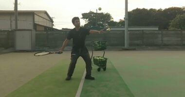 【テニス】【太もも痩せ】【家トレ◇ストローク用】軸足にググッと乗れる感覚をパワーアップさせ、楽にボールを飛ばせるバランス感覚を磨く+スイング時に目線を…
