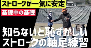 【基礎中の基礎だけど出来ない人が多い】テニス ストロークの軸足設定練習 練習メニュー…