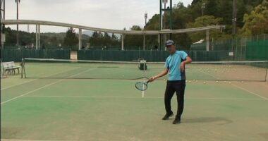 【テニスのコツ骨】ゆるテニス№991(テーマはラケットを垂直に立てて待つ:チャンスボールで緩く弾むボールをラケットを立てて時間待ちするフォアーハンドストロー…