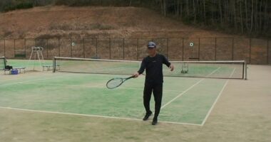 【テニス】体を連動させたフォアハンドストローク【ポイント】・スタンスはセミオープンスタンスがおすすめです。 →股関節を使えます・ローディングを…