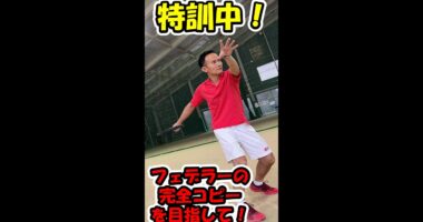 【テニス】フェデラーの完全コピーを目標とする私のフォアハンドストロークのフォームを修正しようと練習している風景!#shorts〝俺は、フェデラーにな…