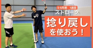 テニスアリーナガーデン松山 5・6月期 1週目 「ストローク 捻り戻しを使おう」愛媛県松山市東石井にあるインドアテニススクールです。冷暖房完備で年中…