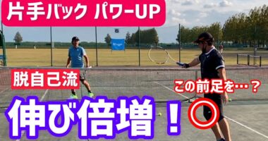 【飛ばない・伸びない片手バックを基本から】テニス ボールの伸びを生む前足の使い方がポイント片手バックハンドを武器にしたい、もっと伸びを作りたい方へ。…