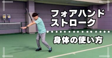 フォアハンドストロークの身体の使い方フォアハンドストロークの身体の使い方について、2つのポイントを解説しています。脱手打ちを目指しましょう!#…