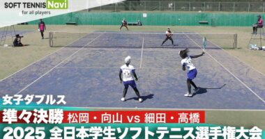 2025インカレ 女子ダブルス/準々決勝 松岡・向山(日本体育大)vs細田・高橋(日本体育大)第80回三笠宮賜杯全日本学生ソフトテニス選手権大会女…