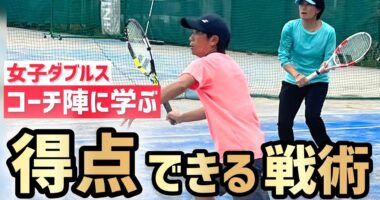【女子ダブルスのポイントパターン練習】テニス コーチ陣の練習を参考に秋の大会に向けてコーチ陣の本気練習会🔥引き続き雁行陣同士の戦い…
