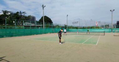 【テニス】25年夏 所属サークルでの練習風景(ダブルス)…