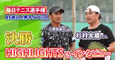 【杉村太蔵さん】初優勝なるか? 「毎トー」ダブルス決勝ハイライト 小野田倫久選手とペア 試合後インタビューも第103回毎日テニス選手権は11日、東京…