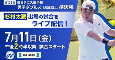 【LIVE配信】杉村太蔵選手出場の試合を中継 毎日テニス選手権 男子ダブルス 決勝第103回毎日テニス選手権(毎トー)で、元衆院議員で高校時代に国体…