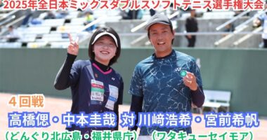 2025年 全日本ミックスダブルスソフトテニス選手権大会 一般 4回戦 高橋偲・中本圭哉(広島 どんぐり北広島・福井 福井県庁) 対 川﨑浩希・宮前希帆(京…
