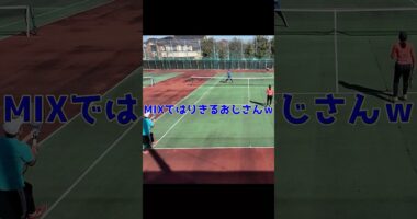 MIXダブルスの好プレイ⑥!ペアの女性につられておじさんがハッスル♪あまり動かないおじさんが、前に左右に動いてポイントを取る! #tennis #テニス #…