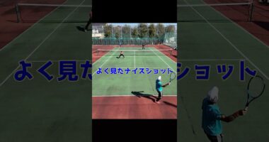 MIXダブルスの好プレイ①!前に来てネットプレイで決めようとするペアをよく見て、肩透かしするようなナイスロブでポイントを奪う! #tennis #テニス #…
