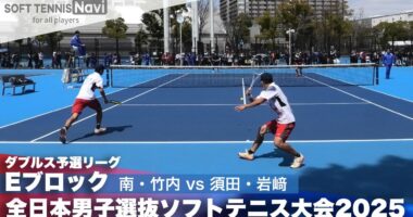 2025全日本男子選抜 ダブルス予選E 南・竹内(三重高校)vs須田・岩﨑(國學院大學)第70回全日本女子選抜ソフトテニス大会第9回全日本男子選抜…