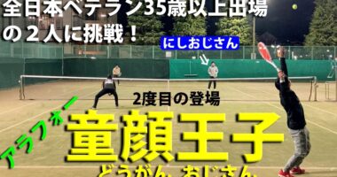 【テニス/ダブルス】童顔王子と組んで35歳以上全日本ベテラン出場の2人に挑戦!【TENNIS】~練習参加者~・中年の童顔野郎"童顔王子"YNK君(…