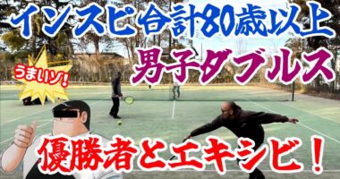 インスピリッツ80歳以上男子ダブルスで、優勝者とエキシビ!【テニス/シングルス】どうも、ハゲのスライサー(綿のつもり)です。 ▼diswatary …