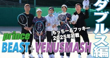 【プリンス】全員『ビースト』新デザイン(280g)+ビーナスマッシュでダブルス実践!!【#プリンス】攻撃型中厚フレームラケット『ビースト』新色ホワイ…