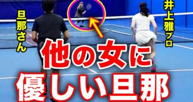 嫁とダブルス組んでいるのに、相手女子に優しすぎる男の戦い!夫婦ダブルスは難しい…【井上雅プロ夫妻vsりこぴん&小野田倫久】予約受付中!杉山愛プロ監修…