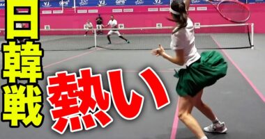 激戦!日本ペアvs韓国ペア!パワフルなのが韓国流⁈ガチダブルス対決【小野田倫久&宇野真彩vsセヒョン&ユン】【김세현】魔法のデカラケ「エンブレム」の…