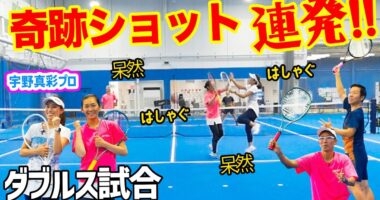 【ダブルス試合】奇跡ショット連発!大好評の戦術マイクトーク試合がめちゃめちゃ面白い凄い展開に【宇野プロ女子ダブルス合宿➡️…