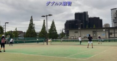 中高年!ミックスダブルステニス!『前衛のポジションについて!』小雨が降ったり止んだりの変な天気でした・・・( ;∀;)2024/09~哲学堂公園…