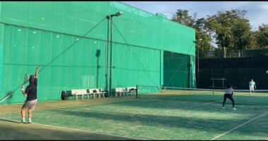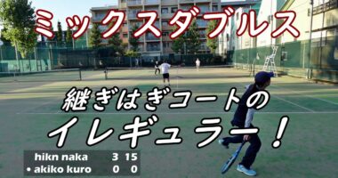 中高年!ミックスダブルステニス!『継ぎはぎコートのイレギュラーボールに気をつけろ!』今回はミックスダブルステニスです。奥さんのテニススクール仲間の女…