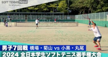 2024インカレ 男子ダブルス/7回戦 橋場・菊山(法政大) vs 小黒・丸尾(立命館大)第79回三笠宮賜杯全日本学生ソフトテニス選手権大会男子の…