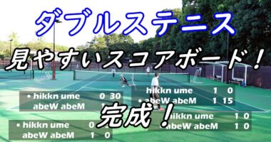 中高年!ダブルステニス!『見やすいスコアボード!完成!』西日でスコアボードが見えずらい・・・( ;∀;)で、バックに薄いブラックで見やすくなりました…