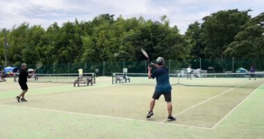 中高年!ダブルステニス!『気を付けよう!予期せぬバックスピン!』大分涼しくなってきましたね!・・・( ;∀;)2024/09~哲学堂公園【ひっ…
