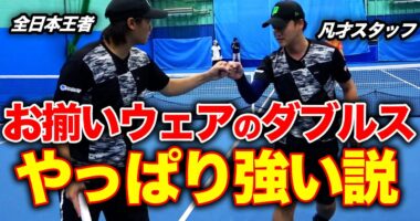 強いダブルスは形から!頼りなさすぎるパートナーでもウェアが揃っていれば強い?海斗プロがへっぽこプロデューサーを勝たせる為に躍動するダブルス【上杉海斗&サクP…