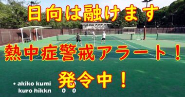 ダブルステニス!『日向は融けます!熱中症警戒アラート発令中!』東京は38度!暑いのなんの!熱中症警戒アラート発令中です!しかも一人無断欠席で四人しか…