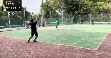 うちと対抗せん?男子ダブルスエキシビ(スコア付)テニスダブルス参加トマト@tomato_tennis しきくま698こむぎ#テニス …
