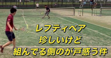 テニス4先ノーアドを数試合 レフティ同士でペアを組むのは相手も戸惑うけど組んでる方が…