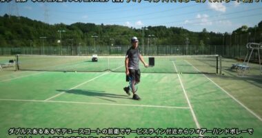 【テニスのコツ骨】ゆるテニス№1307(テーマはダブルスあるあるでサービスライン付近からフォアーハンドボレーでストレートにスライスロブを上げて攻めるコツのレ…