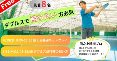 【参加無料】ダブルス勝率アップ特別レッスン by JTAランカー田之上プロ 6/19■こんな方におすすめ・最近試合で勝てないから、『勝つ』きっかけ…