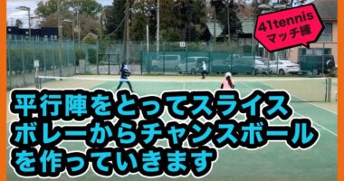 【e-tennis】ひとり言ー遠藤修ー 「勝てちゃうぞ!ダブルス」平行陣をとってスライスボレーからチャンスボールを作っていきます#テニス#女子ダブル…