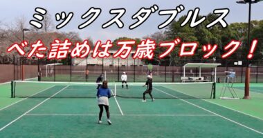 ミックスダブルステニス!『べた詰めは万歳ブロックで決まり!?』今回はミックスダブルスです。 桜は一分咲きで春雨は止み、うっすら陽が射して・・・202…