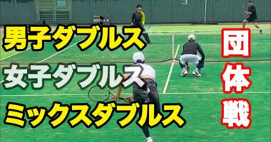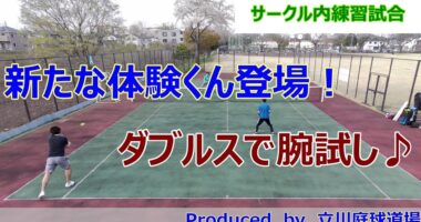 【テニス試合動画】【ダブルス】新しい体験くんが練習に参加♪ちょっと緊張気味なのか、微妙にありえないショットを繰り出し、みんなを困惑させる?!テニスサ…