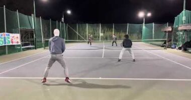 【テニス/ダブルス】サウスポー3人と楽しくダブルス/1対戦目【TENNIS】まじめナダルIMN君&99kg反社会的な顔のYSD君VSポーカーフェ…
