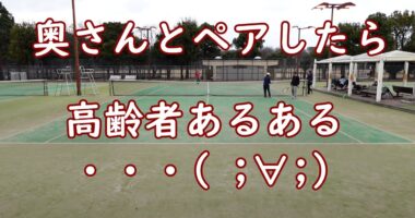 ダブルステニス!『奥さんとペアしたら、高齢者あるある・( ;∀;)!?』風の強い日です。風を読まないとショットが難しいですね・おまけに高齢者あるある…