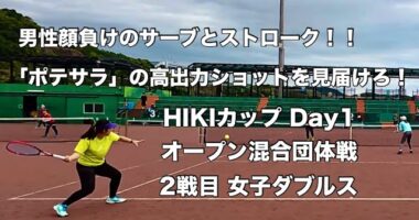 【テニス】男性顔負けのサーブとストローク!! 「ポテサラ」の高出力ショットを見届けろ! HIKIカップ Day1 オープン混合団体戦 2戦目 女子ダブルス(…