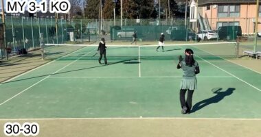 ダブルステニス!【旦那ペア対奥さんペア!?】今回、2023年テニス締めくくりです。夫婦どうしの旦那ペア対奥さんペアダブルスです。寒かった~体調も悪か…