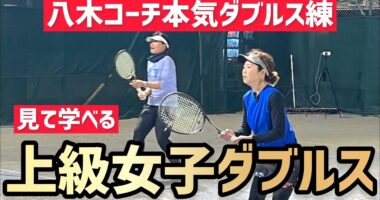 【見て学べる上級女子ダブルス】テニス 本気のポイント練習で連携力を高める八木コーチの本気ダブルス練習🎾見て学べるポイント練習、連携…