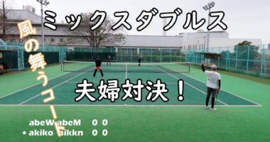 ミックスダブルステニス!【風の舞うコートで夫婦対決!】前回、奥さんペア対旦那ペアで奥さんペアが勝利。今回は夫婦対決ミックスダブルスです・・・2023…