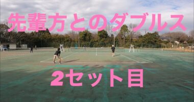 【テニス】先輩方とダブルスしました。2セット目。神谷先輩・加藤先輩ペア 対 岩田先輩・楢﨑ペアで試合をしました。2セット目です。途中で充電切れで撮…