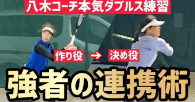 【強いペアはこうやって連携する】テニス 相手並行陣を苦にしないダブルスペアの特徴は?八木コーチの本気ダブルス練習🎾後衛が沈めて前衛…