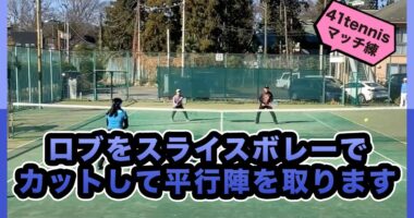 【e-tennis】ひとり言ー遠藤修ー 「勝てちゃうぞ!ダブルス」ロブをスライスボレーでカットして平行陣を取ります#テニス#女子ダブルス#全国レディ…